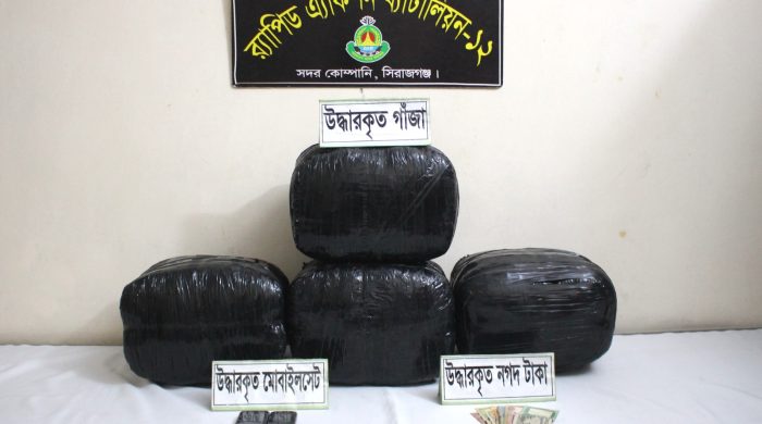 নিজস্ব প্রতিবেদক >> সিরাজগঞ্জের যমুনা সেতু পশ্চিম থানার গোলচত্বর এলাকা থেকে ২০ কেজি গাঁজাসহ দুইজনকে গ্রেফতার করেছে র্যাব-১২ । এ সময় একটি কাভার্ড ভ্যান, দুইটি মোবাইল ফোন এবং নগদ এক