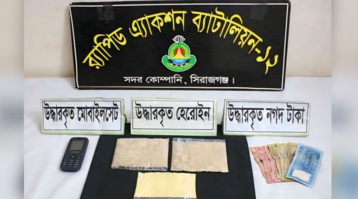 নিজস্ব প্রতিবেদক >> সিরাজগঞ্জের সলঙ্গায় র্যাব-১২ এর মাদকবিরোধী অভিযানে ৭৫ গ্রাম হেরোইনসহ এক নারী মাদক ব্যবসায়ীকে আটক করা হয়েছে। এ সময় তার কাছ থেকে হেরোইন ছাড়াও একটি মোবাইল ফোন ও